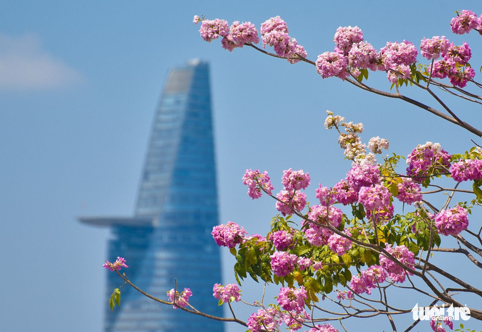 Saigon’s rosy trumpet flowers have bloomed early due to the recent hot weather