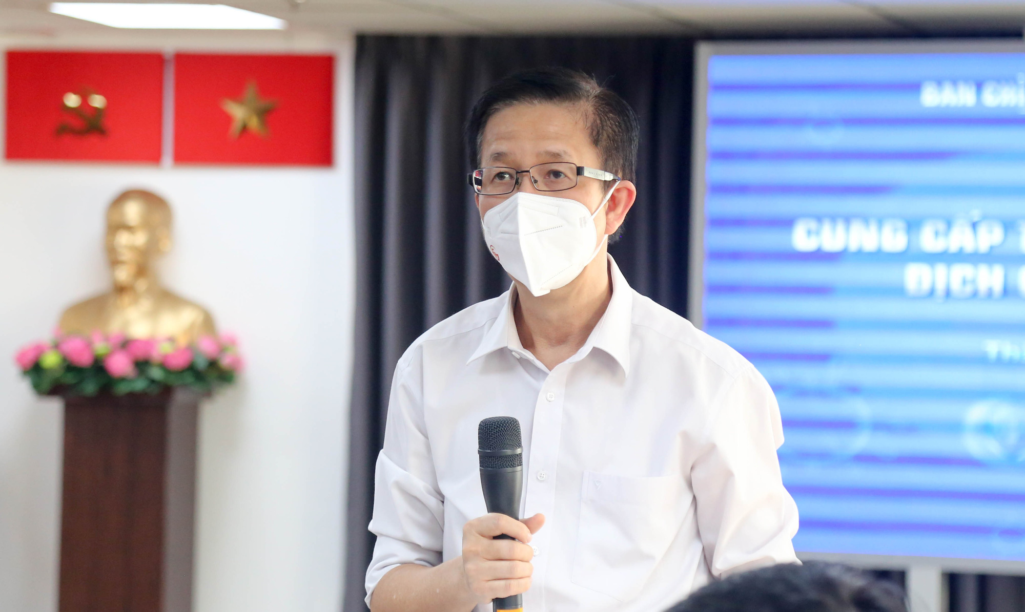 Pham Duc Hai, deputy head of the Ho Chi Minh City Steering Committee for COVID-19 Prevention and Control, speaks at a press conference, August 27, 2021. Photo: Thao Le / Tuoi Tre