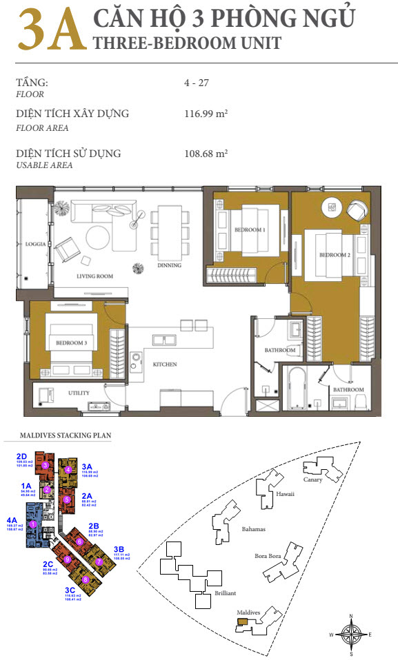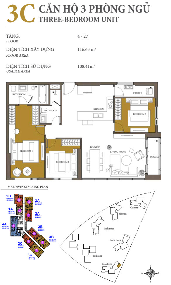 Maldives is the most luxury tower in Diamond Island project. It had been handed over with high-end equipment, such as: multies air conditioner from Daikin supplier, marble floor, toilet equipment from Kohler & Grohe, kitchen equipment from Bosch….