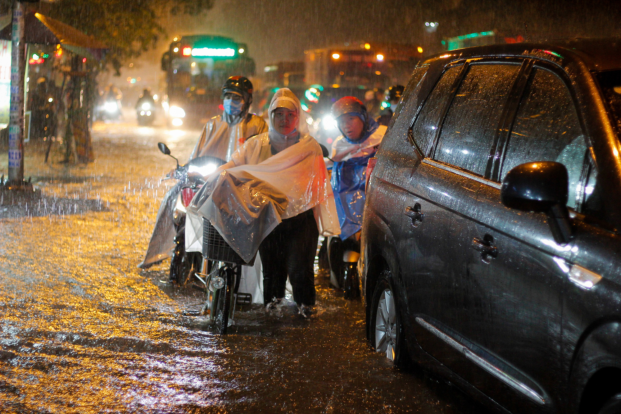 People travel in a heavy downpour in Ho Chi Minh City. Photo: Chau Tuan / Tuoi Tre